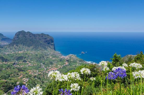 Landschaftliche HighlightsEin Vermessungsstein auf Kniehöhe markiert den Felsvorsprung Ponta do Espigão Amarelo. Hier kann man den tollten Blick auf den Adlerfelsen Penha de Águia und das benachbarte Porto da Cruz genießen.