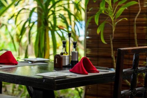 Das große Restaurant mit Strohdach direkt am Meer serviert ein kontinentales Frühstück sowie kreolische und internationale Küche zum Abendessen. Auf Anfrage werden Lunchpakete angeboten.