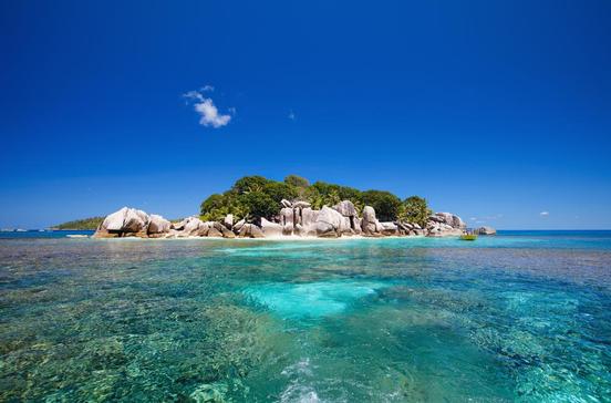 Kitsch und Fisch – so scheint der heimliche Werbeslogan für diese Miniinsel zu sein: Wie gemalt präsentiert sich die Premiumkulisse aus Kokospalmen, Granitskulpturen und Bilderbuchbuchten. Dass dann auch noch ein schützendes Riff das Eiland umgibt, ist das Tüpfelchen auf dem i – idyllisch und ideal zum Schnorcheln.
