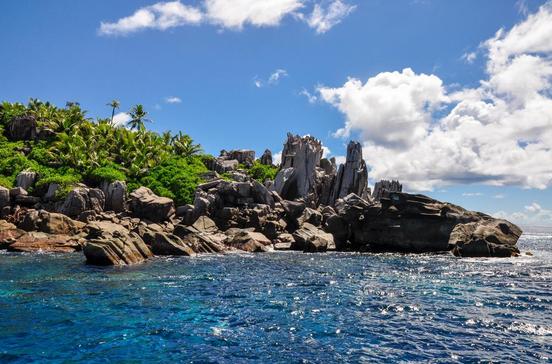 Noch mehr Verwandtschaft, nämlich die „Große Schwester“, liegt nur eine Handbreit hinter Praslin. In der Tat – die ca. 100 ha große Insel hat etwas sehr Weibliches; ihr bizarres, aus dunklem Granit bestehendes Bergmassiv erscheint aus der Ferne wie zwei wohlgeformte Brüste. Wild und schön ist ihre Natur, durch die sich verwunschene Pfade schlängeln. In den glasklaren Gewässern, in die man ohne getrübte Sicht in die Tiefe blicken kann, tanzen gern Schwärme von Rochen. Tagestouren ab Praslin, in der Regel mit Barbeque am Strand, organisiert das Luxushotel Chateaux des Feuilles.