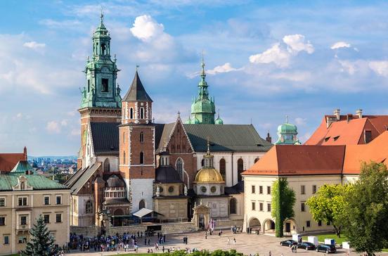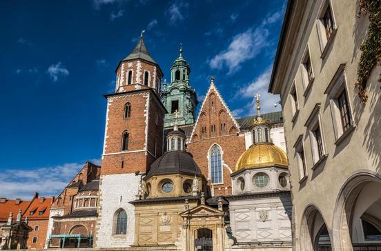Die Erzkathedrale St. Stanislaus und Wenzel, wie die in der Nachbarschaft des Schlosses auf dem Wawel-Hügel liegende Krakauer Kathedrale offiziell heißt, ist die wichtigste Kirche im ganzen Land - wegen ihrer Symbolik und ihrer Funktion. Die Krönungskirche der polnischen Monarchen ist das dritte Gotteshaus an dieser Stelle, sie stammt aus dem 14.Jh., wurde aber über die Jahrhunderte unzählige Male umgebaut und vereint alle möglichen Architekturstile vom Mittelalter bis zur Moderne. Sie ist der Beisetzungsort der polnischen Regenten, weswegen im Dom eine ganze Reihe königlicher Särge steht. In der Krypta fanden auch der im April 2010 bei einem Flugzeugunglück ums Leben gekommene Präsident Lech Kaczyński und seine Frau ihre letzte Ruhestätte. Die dreischiffige Basilika wird flankiert von zwei gotischen Kapellen, von denen vom Eingang aus die rechte - die Heiligkreuzkapelle - besonders sehenswert ist. Sie wurde im 15.Jh. mit russisch-byzantinischen Fresken geschmückt. In dieser Kapelle befindet sich das Marmorgrab des polnischen Königs Kazimierz Jegiellończyk, geschaffen von Veit Stoß. Den zentralen Platz im Dom nimmt ein silberner barocker Sarg ein, der die Reliquien des hl. Stanisław birgt. Die Kathedrale ist für eine Königs- und Bischofskirche relativ klein, daher die große Zahl der bereits erwähnten Kapellen, die sie von allen Seiten umgeben. Zwei sind von besonderem Wert: die Kaplica Zygmuntowska (Sigismund-Kapelle) und die Kaplica Wazów (Waza-Kapelle). Erstere wurde als "Perle der Renaissance nördlich der Alpen" bezeichnet: Ihre Stileinheit und perfekte Harmonie macht sie bis heute nicht nur für Kunstkenner zu etwas ganz Besonderem. Sie stammt aus dem 16.Jh. und ist das Werk des Italieners Bartolome Berecci, der sie aus rotem ungarischem Marmor, kombiniert mit weißem Stein, schuf. Die Waza-Kapelle ist der Inbegriff barocker Kunst und barocken Denkens, ganz mit schwarzem Marmor ausgeschmückt. Die Skelette am Türgitter sollen an die Vergänglichkeit des Lebens erinnern. Statten Sie auf jeden Fall dem Wieża Zygmuntowska (Sigismundturm) mit seiner tollen Aussicht und der gleichnamigen Glocke einen Besuch ab. Das Berühren dieser Glocke, so will es die Legende, garantiert ewige Liebe und Glück im Leben. Im Dommuseum sind interessante Stücke aus der Schatzkammer ausgestellt: Kelche, Monstranzen, liturgische Gewänder und Gegenstände, die an Papst Johannes Paul II. erinnern.