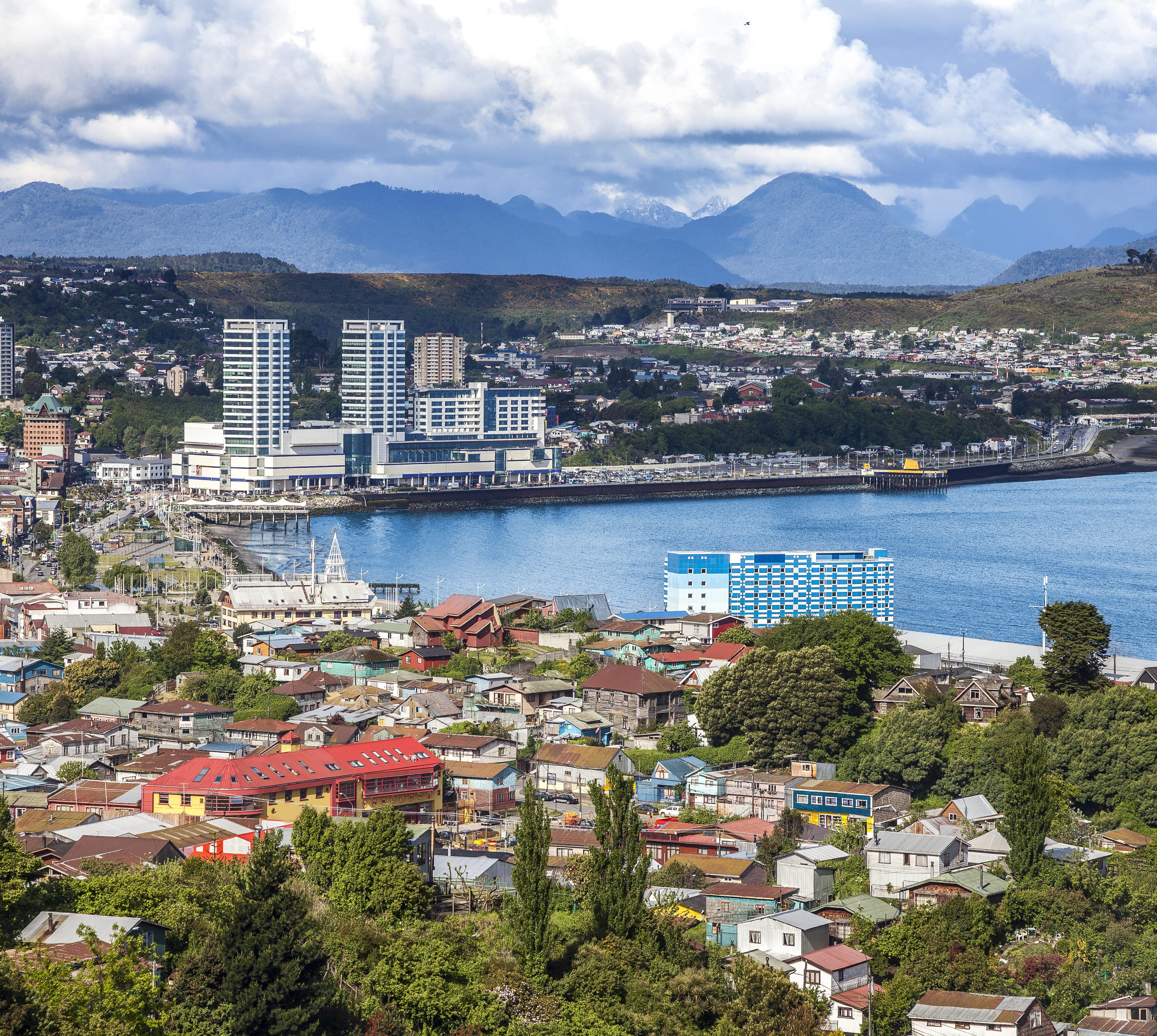 Die lebhafte Hafenstadt (210 000 Ew.) an der Reloncaví- Bucht versprüht spröden Pioniercharme: Holz- und Wellblechhütten neben modernen Betonbauten.
