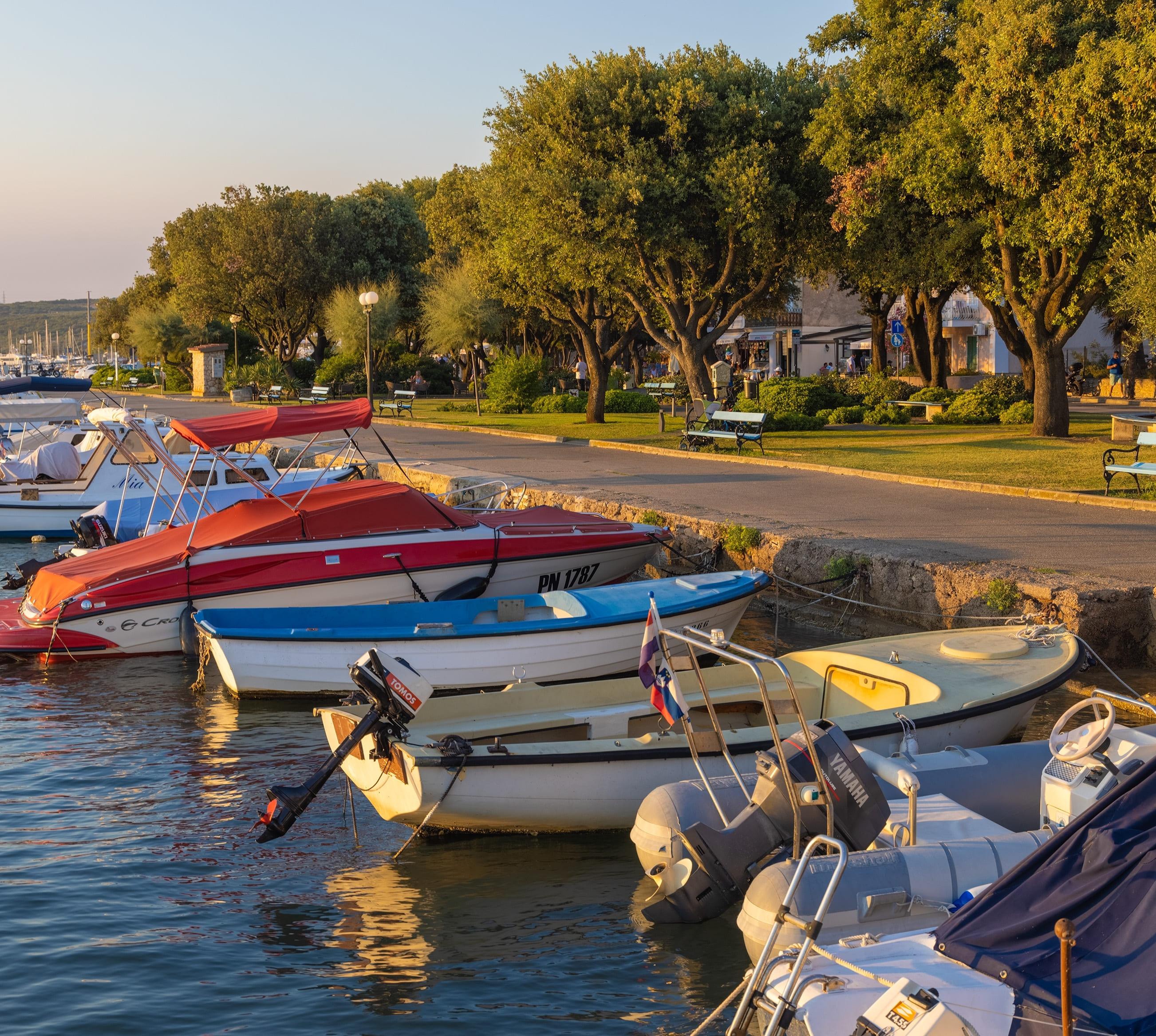 Kreisrund liegt die Bucht von Punat da. Sie ist so geschützt, dass das Wasser hier kaum richtige Wellen schlägt. Höchstens, wenn in Punat (1900 Ew.) ein Boot in die Marina einläuft, die mit 1200 Plätzen zu den größten in Kroatien gehört. Daher trifft man hier viele Segelcrews, die den Tag im Straßencafé oder einem der netten Restaurants an der Uferpromenade verbringen. Unter Skippern beliebt ist die Konoba Sidro mit rustikalem Holzmobiliar. Fische füttern auf dem Meeresboden? Das geht beim Spaziergang durch den Algenwald im Unterwasserpark. Helm auf, untertauchen und einfach nur noch staunen.