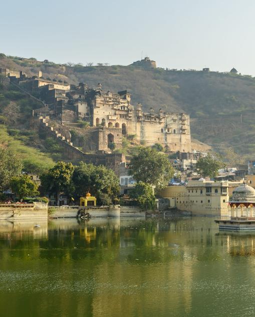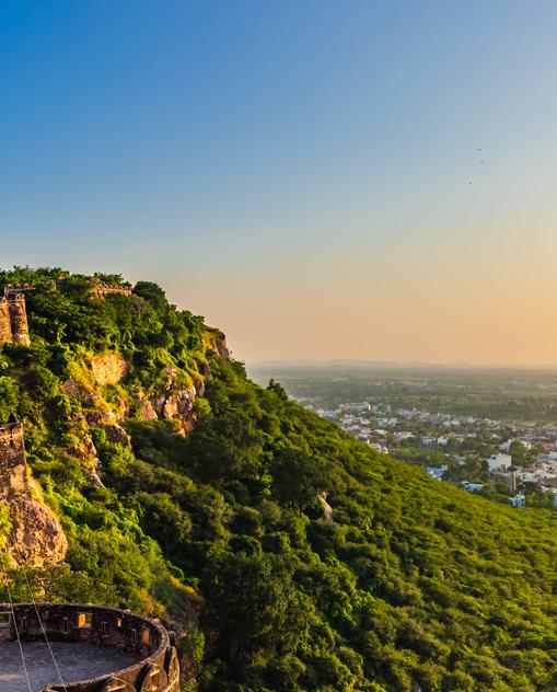 Ob Sie als Vogelliebhaber kommen, Indiens Tiger und Leoparden sehen oder in einem Himmelbett für Könige übernachten wollen - Sie haben die Auswahl. Denn auch das gehört zu Rajasthan: grüne Oasen, bewaldete Hügel und Vogelschwärme über jahrhundertealten Stauseen. Östlich der bis zu 1700 m hohen Aravalli-Gebirgskette weichen die trockenen Landschaften der Thar Weizenfeldern und Wasserlandschaften.