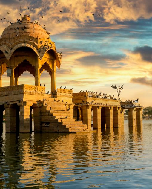 Lassen Sie sich vom Blick aus den Fenstern im „Palast der Winde“ beflügeln! Tauchen Sie ein in das steingeschnitzte Gassengewirr des goldenen Jaisalmer! Beobachten Sie in der Wüste Gazellen vom Rücken eines Kamels aus, sehen Sie Adler und Eisvögel über Seen kreisen. Die Fürsten, die Rajasthan, übersetzt „Land der Könige“, seinen Namen gaben, hinterließen im Wüstenstaat ihre Spuren: trutzige Burgen, monumentale Paläste - und bei den Rajasthanis großen Stolz auf ihre Vergangenheit, die sie mit viel Traditionsbewusstsein lebendig halten.
