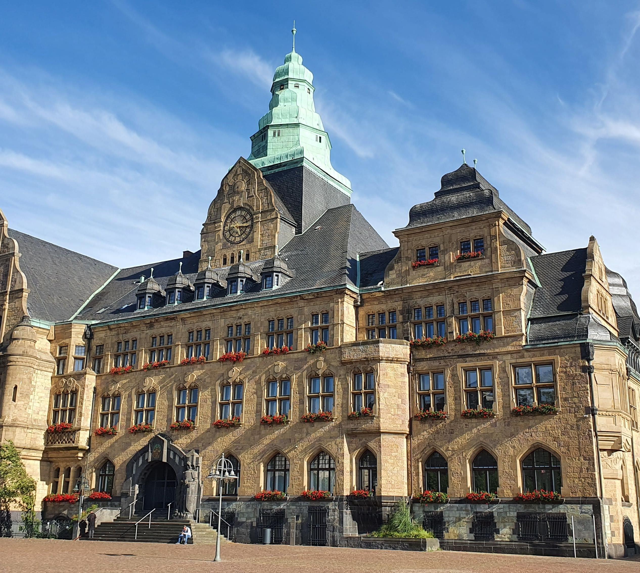 Ein verspielter Historismus-Bau von 1908 und repräsentatives Monument einstigen Bürgerstolzes. Gotik, Frührenaissance und Jugendstil werden hier zitiert. Zahlreiche Reliefplastiken, die die deutsche und die Stadtgeschichte darstellen, sind zu bewundern.