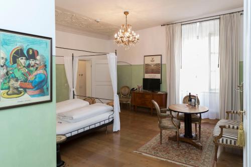 Entspannen Sie in Ihrem individuell gestalteten Zimmer mit antikem Mobiliar, Himmelbett und zauberhaften Stuckelementen. Kostenfreies Breitbandinternet steht zur Verfügung.