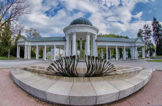 TouristenattraktionenDie Quelle des Schlossbrunnens wurde bereits im 18.Jahrhundert entdeckt, woraufhin der Kolonnadenbau Anfang des 20.Jahrhunderts begonnen wurde. Heute kann man dort u.a. das Sprudelsteinrelief des Quellgeistes sehen, der als Beschützers der Quelle gilt. Diese wird ebenfalls für Kurzwecke verwendet. Der Pavillon ist für die Öffentlichkeit frei zugänglich.