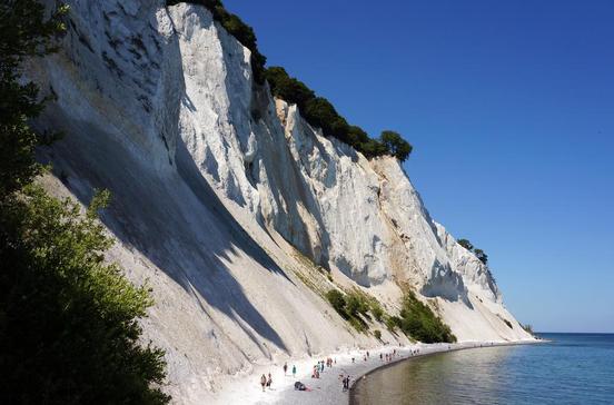 Die weltberühmte Attraktion liegt an der Ostküste der Insel, ein paar Kilometer von Stege entfernt. Anders als auf Rügen geht es hier auch am höchsten Punkt selten überlaufen zu: Vom 128 m hohen Felsen Dronningestolen, dem "Stuhl der Königin", sind bei guter Sicht Südschweden und Rügen zu erkennen. Møns Klint ist eine Zeitreise durch 75 Mio. Jahre Erdgeschichte: Forschende Strandsucher stoßen immer wieder auf versteinerte Seeigel, Ammoniten und andere Zeugen der fernen Vergangenheit. Strahlend schön leuchten die weißen Felsen vom Wasser aus: Schiffstouren gehen ab Klintholm Hav.