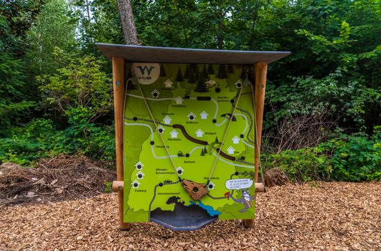 Ein richtiges Highlight ist der 42 Meter hohe Kletter- und Aussichtsturm. Die Aussichtsplattform kann man bequem über das Treppenhaus erreichen. Wer es abenteuerlicher liebt, kommt auch über eine Kletterwand hoch.
