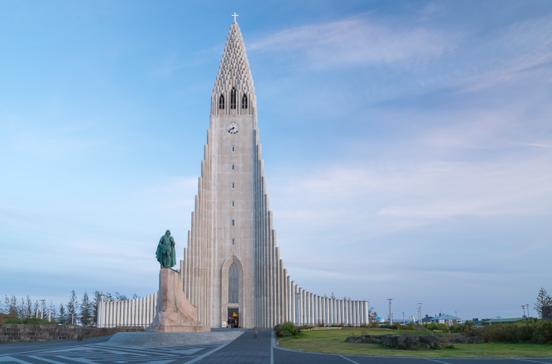 Weithin erkennt man den 76 m hohen Turm dieser Kirche, die das Wahrzeichen der Stadt und nach dem Passionsdichter Hallgrímur Pétursson (1614-74) benannt ist. Den stilistisch ungewöhnlichen Bau, der Platz für 1200 Menschen bietet, entwarf Guðjon Samúelsson. Bei dem weit ausladenden Turm orientierte er sich formal an der Anordnung von Basaltsäulen. Nach über 40-jähriger Bauzeit konnte die Kirche 1986 geweiht werden, und 1992 erhielt sie ihre große Klais-Orgel. Während der Sommermonate finden regelmäßig Orgelkonzerte statt, die in der hellen und offenen Kirche ein Hörgenuss sind. Vor der Kirche steht ein Standbild Leifur Eiríkssons, des "Entdeckers" der Neuen Welt. Die Skulptur des Bildhauers Stirling Calder ist ein Geschenk der USA von 1930 und nimmt die Form des Turms auf.