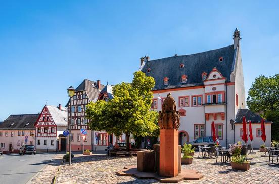 Das Kiedricher Rathaus mit seinen zwei flankierenden Erkern und Sandsteinumrahmungen gilt als schönstes Renaissancerathaus von Hessen. In dem 1585 errichteten Bau geben sich Brautpaare gern das Jawort.