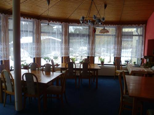 The restaurant, which is open from 26 of December to the end of February, serves international cuisine. There is a sunny, south-facing terrace opened whole year overlooking the Špindlerův Mlýn Valley.