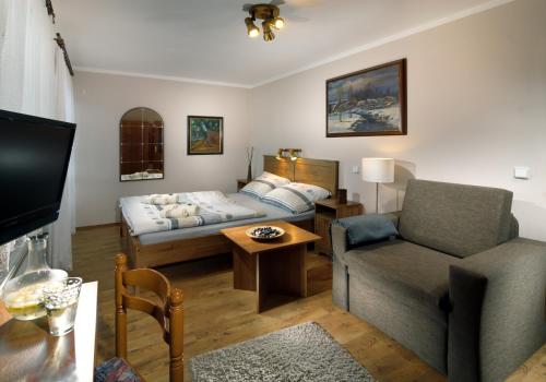 Alle Wohneinheiten in der Unterkunft Pension U slunce sind versehen mit einem Sitzbereich und einem Flachbild-TV. Jedes Zimmer ist ausgestattet mit einem Wasserkocher und einem eigenen Badezimmer – einige Zimmer sind ausgestattet mit einem Balkon und manche haben Bergblick. In der Unterkunft Pension U slunce sind die Zimmer versehen mit Bettwäsche und Handtüchern.