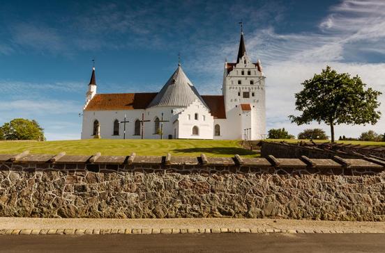 Die Horne Kirke ist die einzige Rundkirche Fünens. Im 12.Jh. wurde sie aus Feldsteinen erbaut und mit Schießscharten versehen. Im Mittelalter ergänzte man den langgestreckten Chor und den viereckigen Turm mit Renaissancegiebeln, die ihr das eigenwillige, uneinheitliche Erscheinungsbild verleihen.