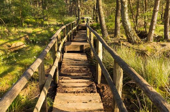 Das Naturschutzgebiet Großes und Weißes Moor ist gut durch Bohlenwege und Beobachtungshütten erschlossen. Wer mag, unternimmt eine 7,5 oder 11,5 km lange Rundwanderung auf bestens markierten Wegen.