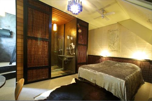 Each room features a flat-screen TV with cable channels and a desk. The private bathroom is fitted with a shower and a toilet. The Deluxe Rooms are individually decorated according to themes such as Old Egypt, Atlantis, and Jungle.