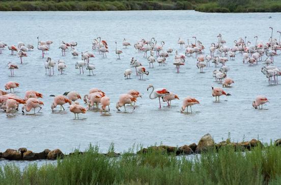 Rosa Flamingos und zahlreiche andere Vogelarten kann man von verschiedenen Punkten an einem 2,5 km langen Pfad entlang dem 9,6 km² großen Étang am westlichen Rand von Canet beobachten.