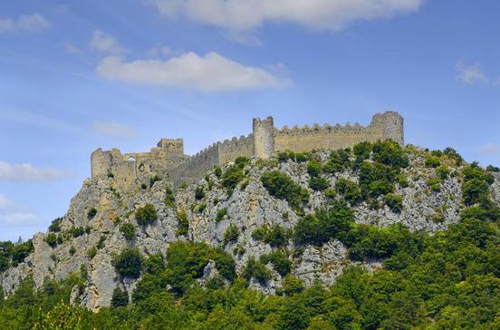Über dem schmucken Dorf Duilhac erhebt sich die mächtigste aller Katharerburgen. Ein steiler Weg führt hinauf zu den 2,5 km langen Mauern des Château de Peyrepertuse. Mit gut 1 ha ist es das größte Bollwerk weit und breit. Bei kräftigem Wind gilt es in Schwindel erregender Höhe gut aufzupassen!