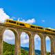 Der „kleine gelbe Zug“ zuckelt vom 4 km westlich gelegenen Villefranche-de-Conflent in den auf 1231 m gelegenen Grenzort Latour-de-Carol. Ursprünglich sollte er die abgelegenen Pyrenäentäler erschließen. Heute ist der Zug ein Touristenmagnet erster Güte. Die Fahrt führt über zwei beeindruckende Talbrücken und 19 Tunnel durch eine Berglandschaft von atemraubender Schönheit. Diese können Sie dank der gemächlichen Geschwindigkeit ausführlich genießen. Sie können die Fahrt auch unterbrechen und beispielsweise in Font-Romeu oder Mont-Louis haltmachen. Im Sommer gibt es auf der 63 km langen Strecke täglich etwa sechs Hin- und Rückfahrten. Hinund Rückfahrt Gesamtstrecke 42,40 Euro.