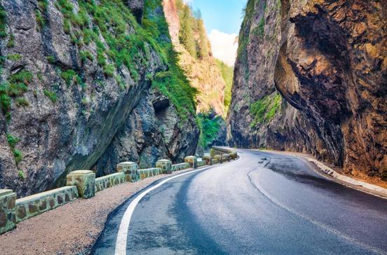 Ein echtes Spektakel bietet diese extrem enge Passstraße nahe dem gleichnamigen Städtchen. Die 10 km lange Klamm, im Volksmund auch „Höllenschlund” genannt, ist umschlossen von mehr als 100 m hohen Felswänden, stellenweise nachtdunkel und gerade einmal 6 m breit. Sportkletterer haben diese Wände bereits entdeckt. Auf der Strecke preisen Verkäufer ihr Kunsthandwerk an. In der Nähe liegt der 30 km lange Bicaz-Stausee. An seinem Westufer im Hafen Port Munteanu kannst du Boote mieten.