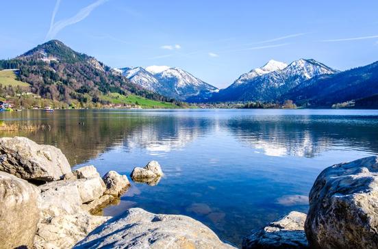 Der kleine Bruder des Tegernsees ist bei Weitem der ursprünglichere, wenngleich natürlich auch hier Hotels, Pensionen und Ferienwohnungen die Ufer säumen. Trotzdem ist an dem vom markanten Brecherspitz (1683 m) beherrschten See eine bäuerliche Herbheit zu spüren, die dem Tegernsee verloren gegangen ist.