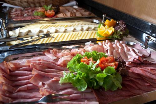 Ein als Buffet angebotenes Frühstück wird in der Unterkunft DORMERO Hotel Burghausen angeboten.