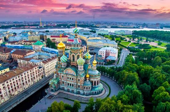 Die „schönste Stadt auf dem Antlitz der Erde“ nannte der amerikanische Dichter und Nobelpreisträger Joseph Brodsky (1940–96) seine Geburtsstadt. Die Metropole (heute 4,7 Mio. Ew.) wurde auf 40 Inseln erbaut, die durch 350 Brücken verbunden sind. Daher wird „Piter“, so der Kosename in der Bevölkerung, gerne als „Venedig des Nordens“ bezeichnet. Zar Peter I. ließ die neue Hauptstadt ab 1703 in nur neunjähriger Bauzeit errichten. Bis heute beeindrucken prächtige Bauten wie der Winterpalast, die Börse oder die Admiralität. Mehr als 3000 Gebäude stehen unter Denkmalschutz – doch leider sind derzeit ca. 2000 Bauten vom Zerfall bedroht. Die Stadt wurde 1914 in Petrograd umbenannt, hieß nach Lenins Tod 1924 Leningrad und trägt seit 1991 nun wieder ihren alten Namen. Auf der Höhe von Alaska gelegen, scheint die Sonne mittsommers nicht unterzugehen, und die berühmten „Weißen Nächte“ von St. Petersburg ziehen viele Besucher an.