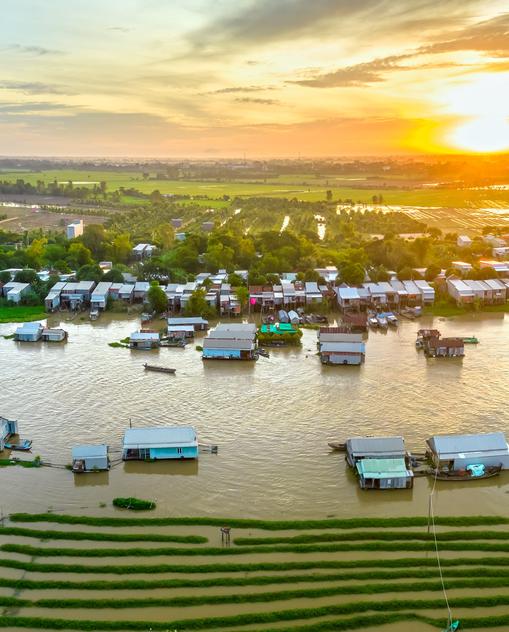 Im Mekongdelta zeigt Vietnam sein tropischstes Antlitz: Auf den ersten Blick schläfrig, aber dennoch voller Macht durchfließt der braune Mekong die Reisfelder und Mangrovenwälder.