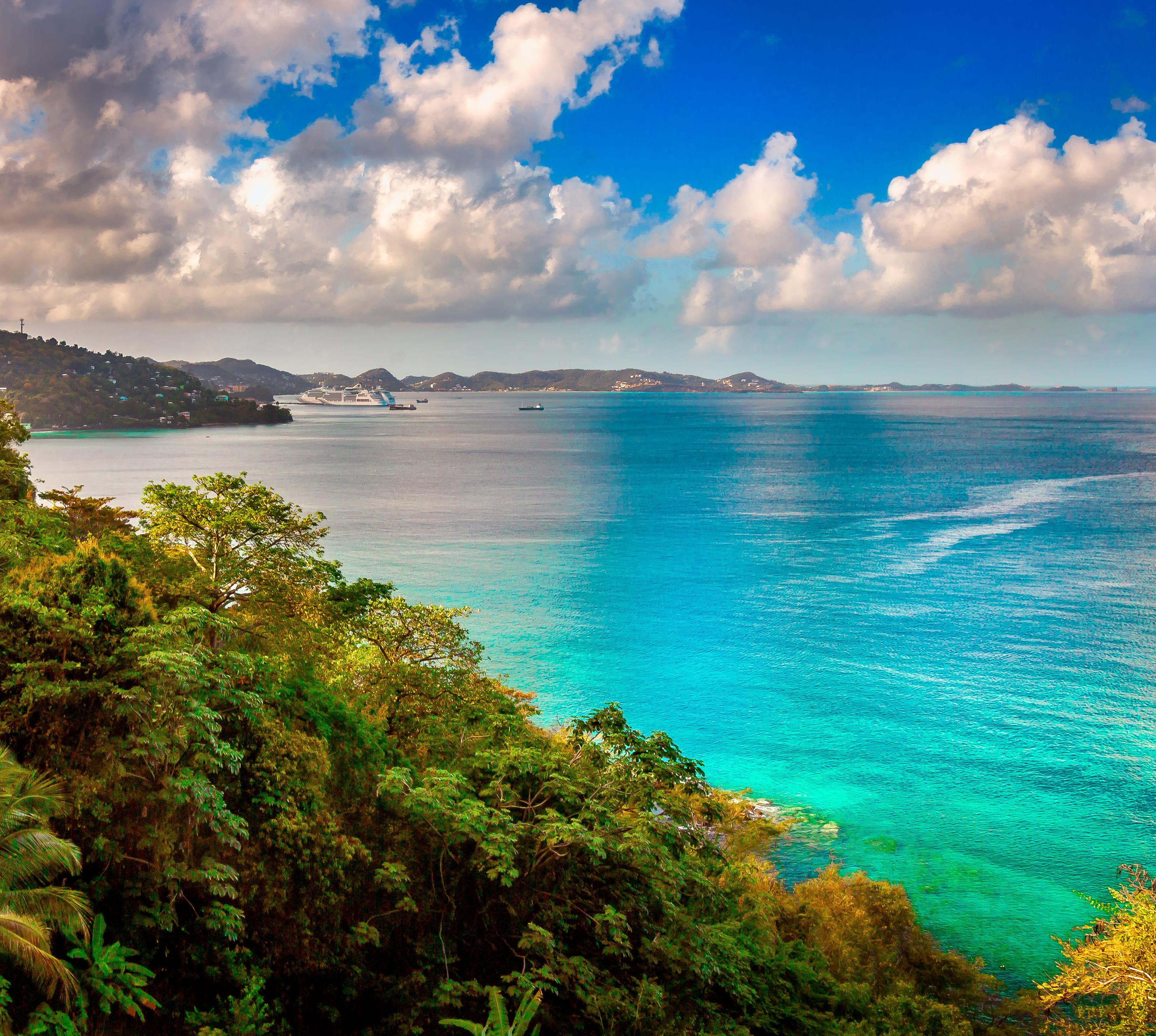 Grenadas Hauptstadt – so wird behauptet – sei die schönste Stadt aller Karibischen Inseln. Und das stimmt tatsächlich! Um eine Landzunge und die natürliche, Carenage genannte Hafenbucht herum gelegen, ziehen sich die Häuser der Stadt (ca. 8000 Ew.) im Halbkreis die Hügel hinauf. Unten im Hafen sieht man häufig die weißen Kreuzfahrtschiffe liegen. Doch lebhaft geht es in St. George’s immer zu. An der Wharf Road werden die kleinen Frachtschiffe be- und entladen, die zwischen den Inseln verkehren. Jenseits des Hügels liegt an der Granby Street der Marktplatz, auf dem man sich vor allem samstags mit exotischen Gewürzen und Früchten eindecken kann. Und an der dem offenen Meer zugewandten Esplanade herrschen Geschäftigkeit und Trubel.