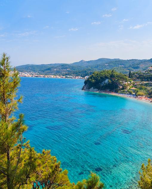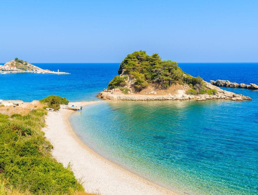 Der Duft von Blumen und Pinien strömt von den Bergen und prallt auf die salzige Meeresbrise. Im Gegensatz zu den kargen Südkykladen ist ein Drittel der Insel dicht bewaldet, was Sámos zu einer der grünsten Inseln des Landes macht. Umso schöner glänzt das Meereswasser in Blau und Türkis, während die weißen Häuser in der Sonne leuchten. Kurzum: Auf Sámos erwartet dich ein Urlaub für alle Sinne.
