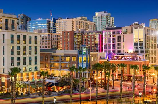 Restaurierte viktorianische Häuser mit Kunstgalerien und Antiquitätenläden, modischen Geschäften und beliebten Bars. Der historische Distrikt, ursprünglich New Town genannt, wurde 1857 von Alonzo Horton angelegt, der die Stadt näher ans Meer rücken wollte.