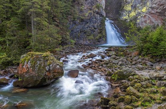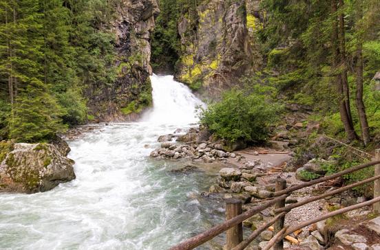 Von Sand in Taufers aus schlängelt sich eine breite Straße über 800 Höhenmeter in den Talkessel des Reintals mit dem Dörfchen Rein, das von den bis zu 3435 m hohen Gipfeln der Rieserfernergruppe überragt wird und idealer Stützpunkt für Touren in die atemberaubende Hochgebirgskulisse ist. Vor dem Dorf stürzt der Reinbach schäumend und tosend über die Felsen, ein Weg mit Geländern und Brücken führt vom Gasthaus zu den Wasserfällen.