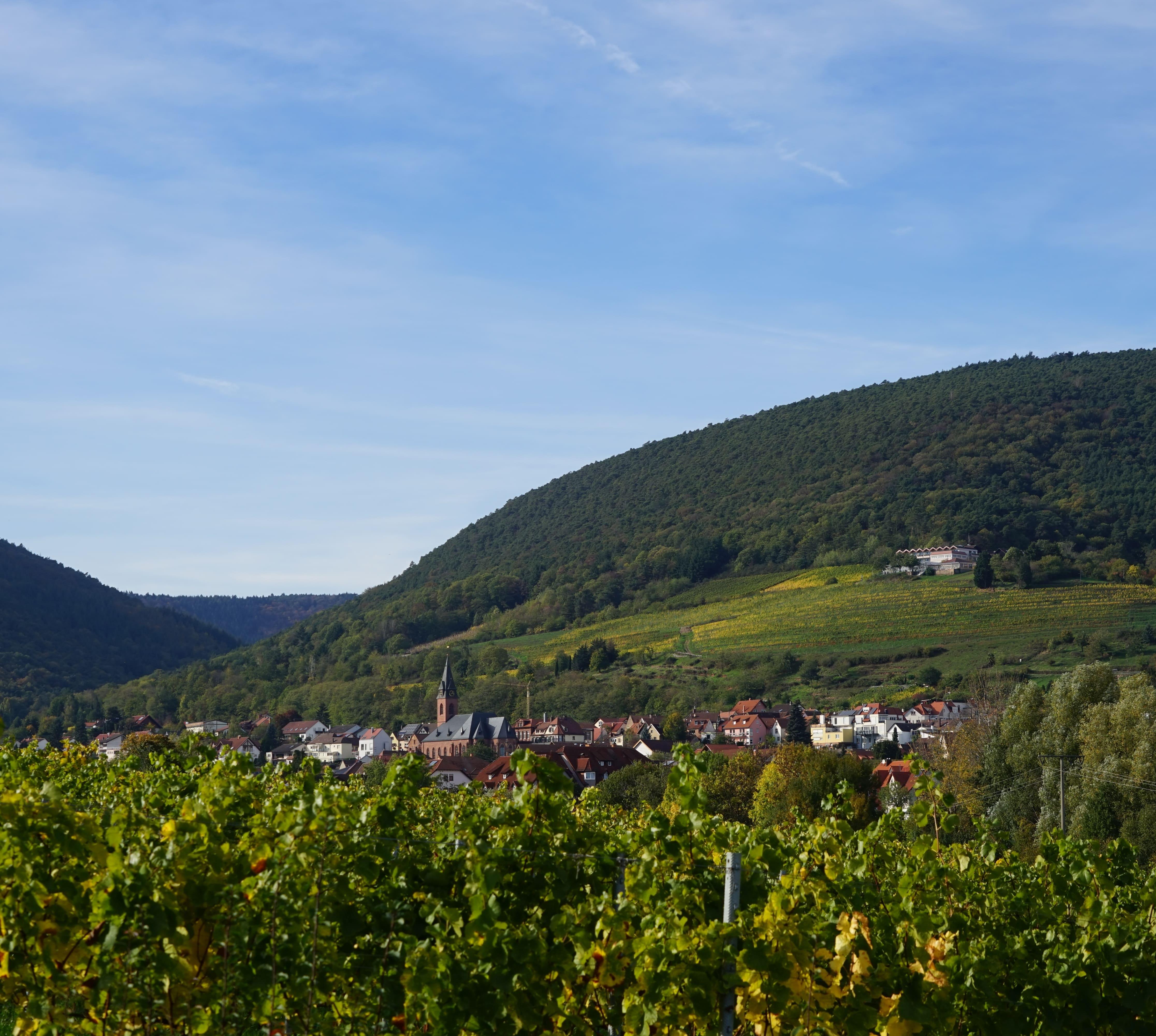 Wenn im Frühjahr die Mandelbäume blühen, erwacht der kleine schmucke Weinort (1900 Ew.), 3 km nördlich von Edenkoben, wieder zum Leben. Er liegt etwas fernab von den Touristenpfaden entlang der Weinstraße. Der Kropsbach schlängelt sich zwischen traumhaftem Fachwerk, auf dem Kirchplatz gibt der heilige Martin von Tours der Gemeinde Schutz. Schatten wirft nur die Martinuskirche mit dem Bibelgarten, in dem Pflanzen wachsen, die im heiligen Land oder der christlichen Mythologie zu finden sind. Weiter oben thront die etwa um das Jahr 1200 erbaute Kropsburg.