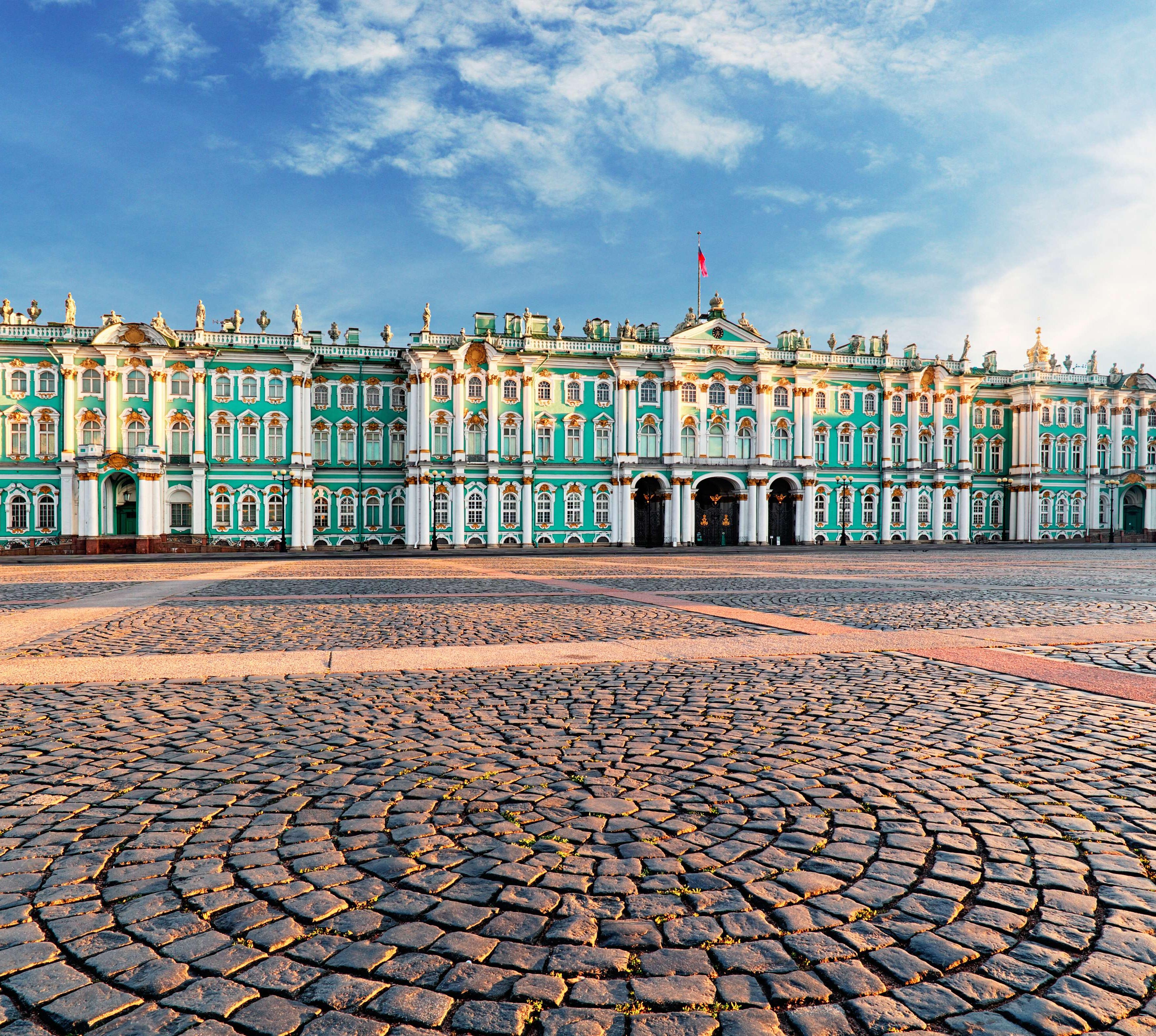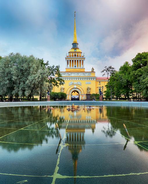 St. Petersburgs Mitte hat etwas von einer Fata Morgana, nicht nur im unwirklichen Pastelllicht der berühmten Weißen Nächte im Sommer. Steht man auf der Troizki-Brücke, hoch über der weiten Wasserfläche der Newa, so scheint die Stadt zu schwimmen. Horizontale Linien prägen das Bild: die langen Ufermauern, die einheitlich hohen Prachtbauten entlang der Kais. Und Brücken, die so flach sind, dass man sie nächtens aufklappen muss, um Schiffe passieren zu lassen. Wasser, viel Wasser – und Eis im Winter – bilden das Zentrum der viertgrößten Stadt Europas. Doch von diesen Ufern aus wurde die riesige Landmasse Russland zwei Jahrhunderte lang beherrscht. Hier floss ihr Reichtum zusammen und schlug sich in Form atemberaubender Kunstschätze und Baudenkmäler nieder. Deshalb ist St. Petersburg mit seiner Vielzahl an Museen und Palästen heute „Russlands Kulturhauptstadt“.