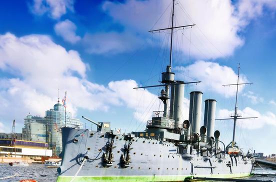 Mit einem Blindschuss aus der Bugkanone des in der Newa liegenden Panzerkreuzers wurde am 25.Oktober 1917 das Signal zum Sturm auf den Winterpalast gegeben - womit die Oktoberrevolution begann.