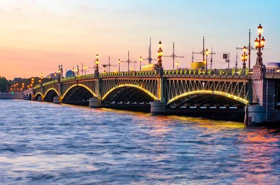 Die Lampen, das Geländer und die Oberleitungsmasten von St. Petersburgs elegantester Newa-Brücke (1903) zeigen Jugendstileinflüsse. Von der 580 m langen Brücke bietet sich ein wunderbarer Ausblick auf das Herz der Stadt.