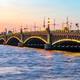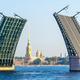 Die 1912-16 neben dem Winterpalast errichtete Newa-Querung ist die bekannteste Brücke der Stadt: Ihre hochgeklappten Mittelflügel vor der Silhouette der Peter-Paul-Festung und dem Pastellhimmel einer Weißen Nacht sind das Petersburg-Motiv schlechthin. Apr