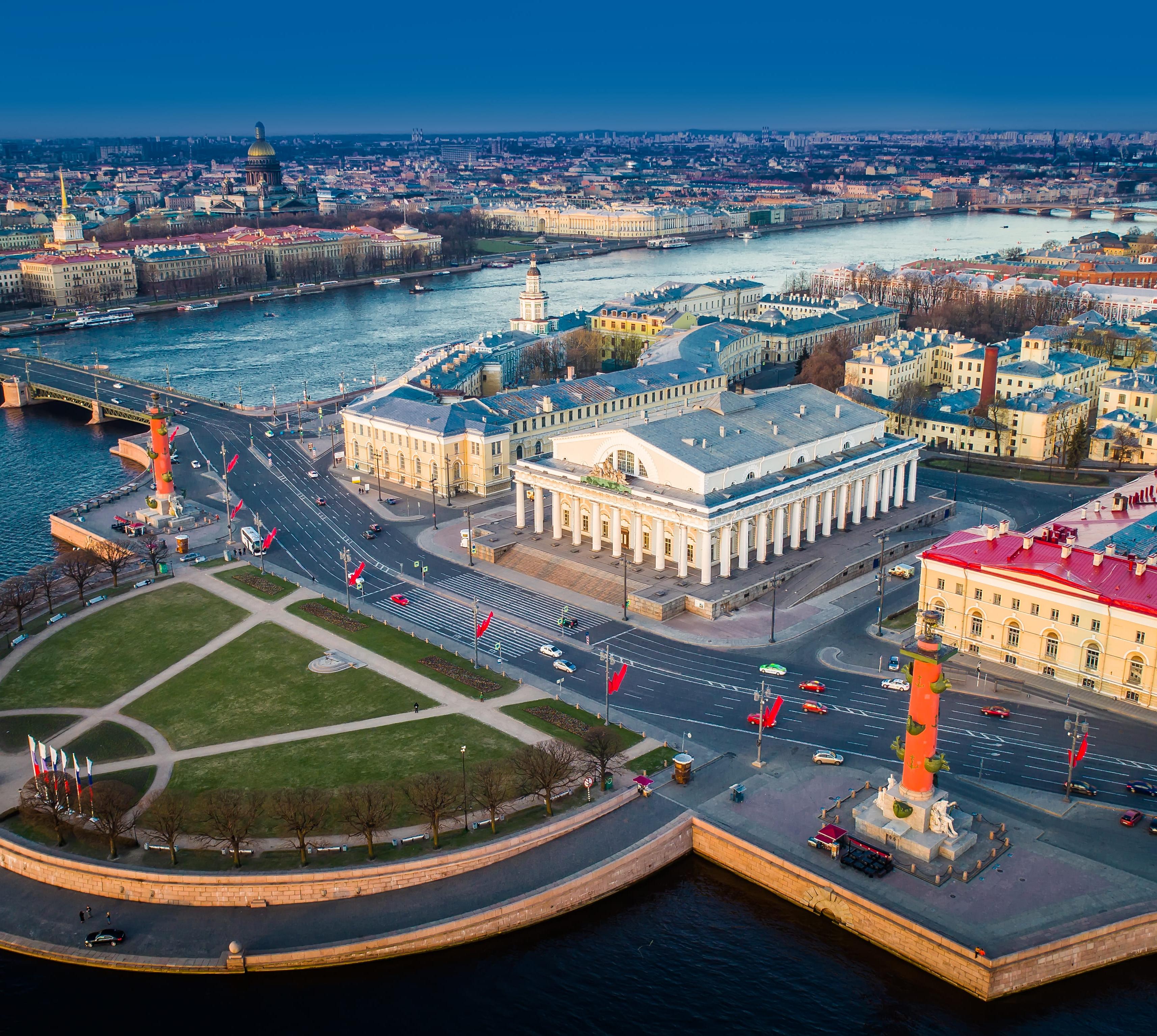Zentrum von Thomas de Thomons Ensemble am Börsenplatz ist der tempelartige Bau der Börse (1805-1810). Seit 1940 befindet sich darin das Museum der Kriegsmarine, das weitgehend der Sowjetflotte gewidmet ist.