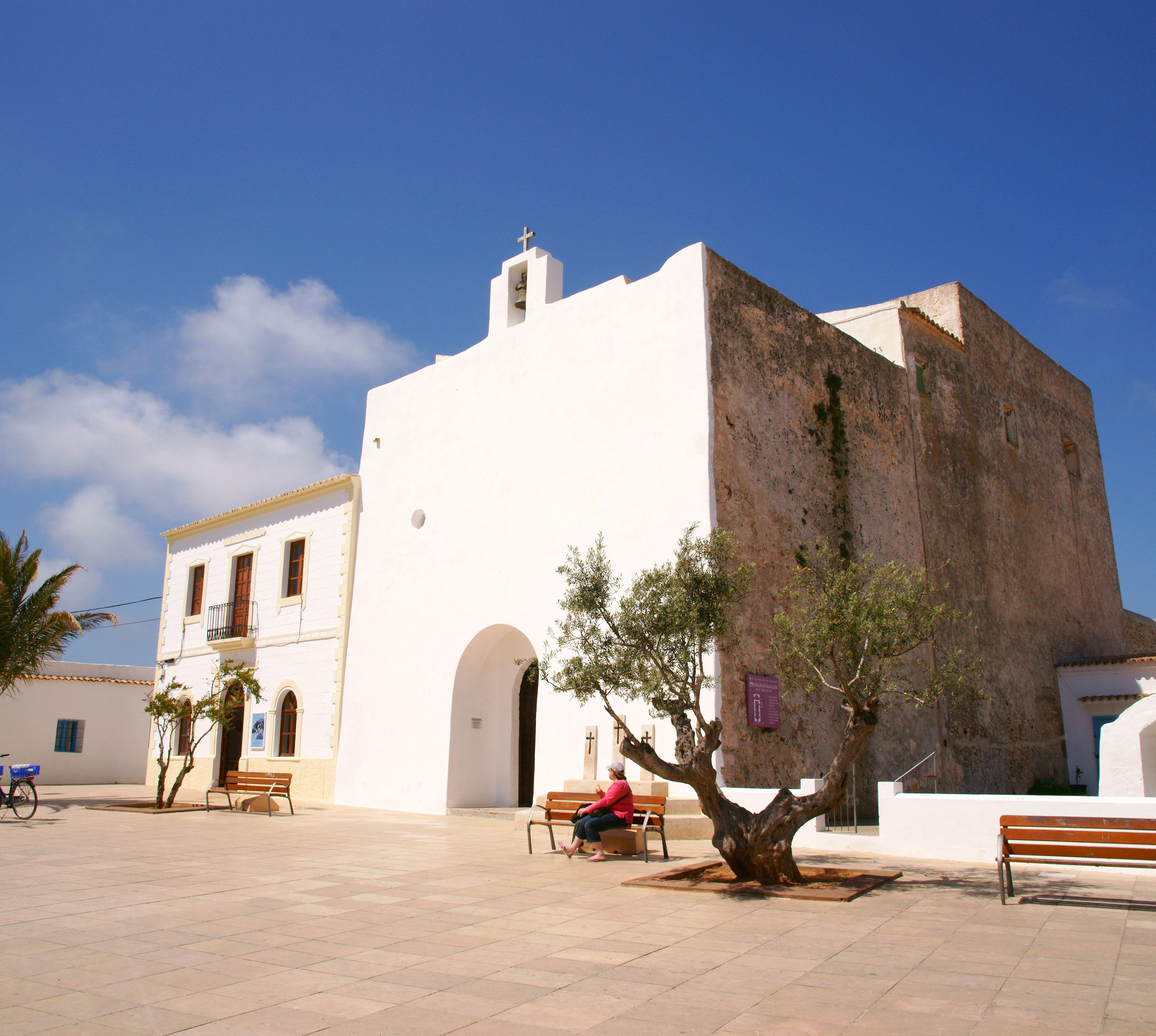Egal, wohin man will: Von La Savina aus führt der Weg zu nahezu jedem Strand oder anderen Ort der Insel an Sant Francesc vorbei. Insofern bietet sich ein Zwischenstopp an – sei es zum Frühstück, bevor es an den Beach geht, oder abends, wenn die Fußgängerzone Carrer de Jaume mit ihren Bars und Restaurants zum Schlendern einlädt. Im Zentrum liegt die Plaça de sa Constitució, an der auch die Kirche, eine Touristeninformation und das Rathaus liegen. Unweit davon befindet sich auch ein kleines Volkskundemuseum, das Museu Etnològic (Mo–Fr 9.30–14 und 17–19, Sa 10–14 Uhr). Auch wenn die Bummelzonen nicht allzu ausgedehnt sind – auswärtige Besucher finden durchaus lohnende Einkaufsmöglichkeiten.