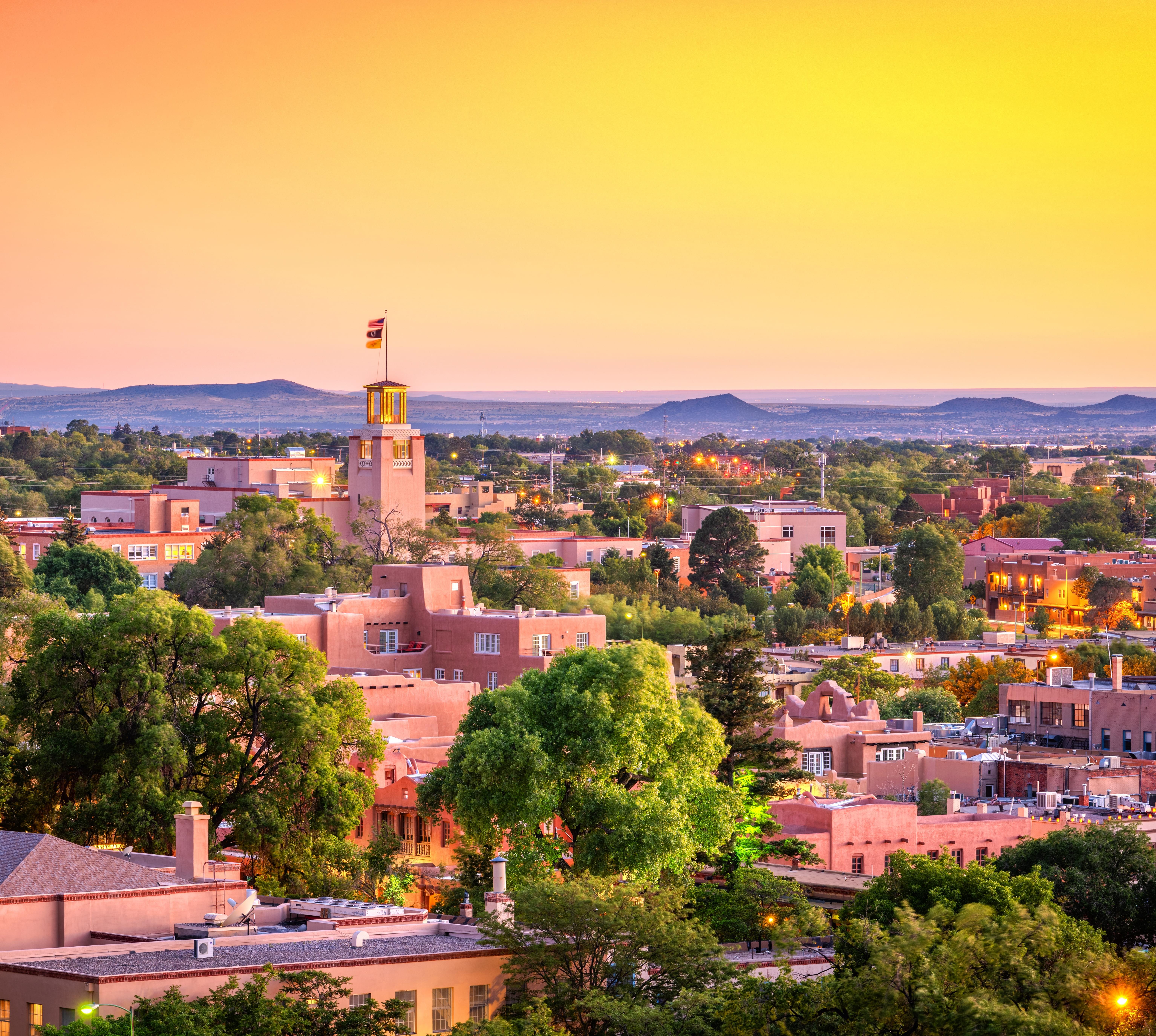 Das von den Spaniern 1609 gegründete Santa Fe gilt als älteste Hauptstadt der USA. Zunächst war es das Zentrum der spanischen Kolonialmacht, dann wurde es zum Handelsknoten am Ende des Santa Fe Trail. In den letzten Jahrzehnten entwickelte sich die Stadt zum Mekka der Aussteiger, New-Age-Propheten und Künstler. Mit über 200 Galerien gilt sie nach New York als bedeutendstes Kunstzentrum der USA. Mittelpunkt der im indianisch-mexikanischen Adobestil erbauten Altstadt ist die Plaza mit dem Gouverneurspalast von 1610.