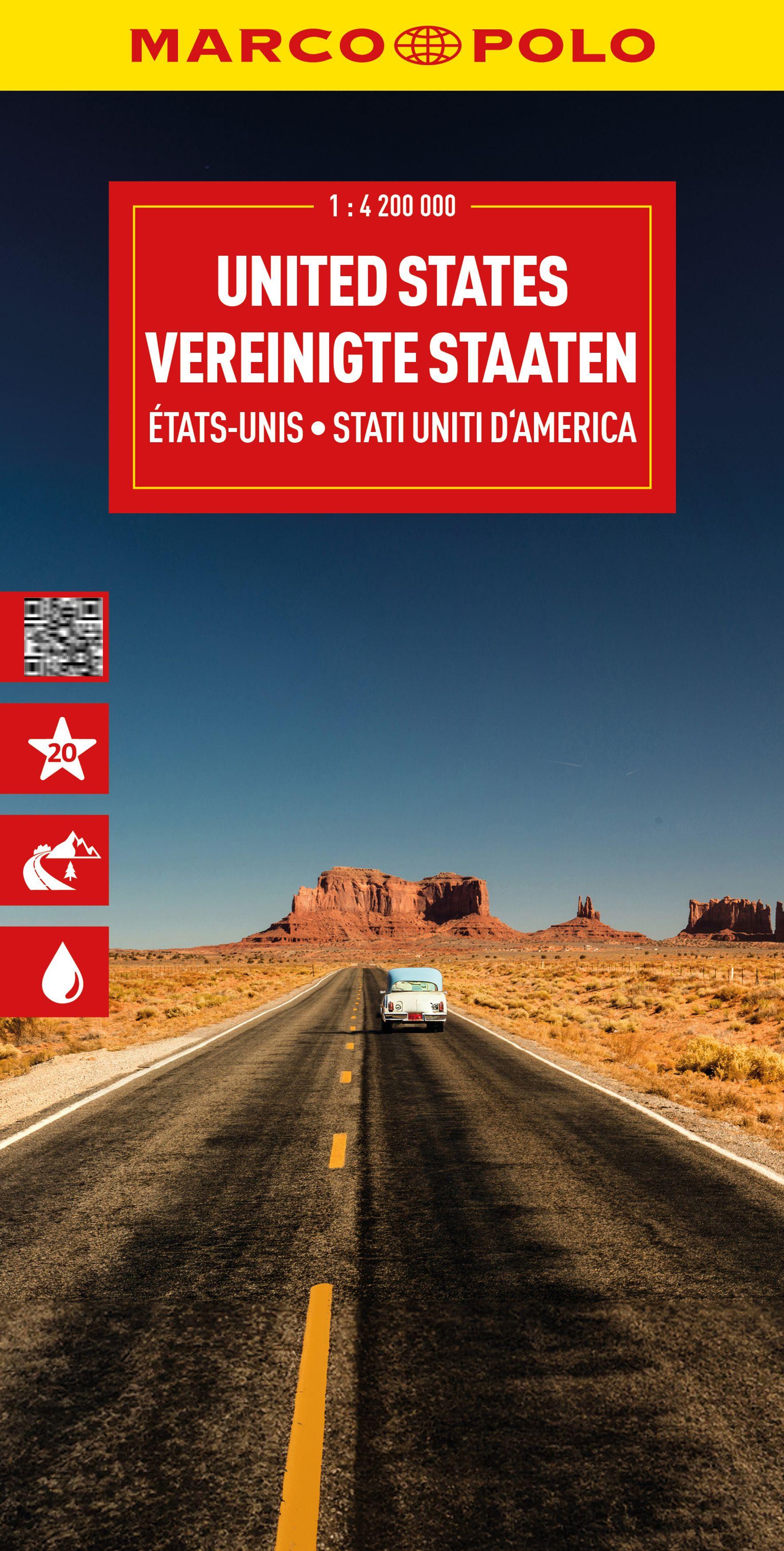 Karte, 12. Auflage · 12.95 €Die MARCO POLO Reisekarte Vereinigte Staaten – Die Karte für Urlaubsplaner und Entdeckerinnen im Maßstab 1:4.200.000.