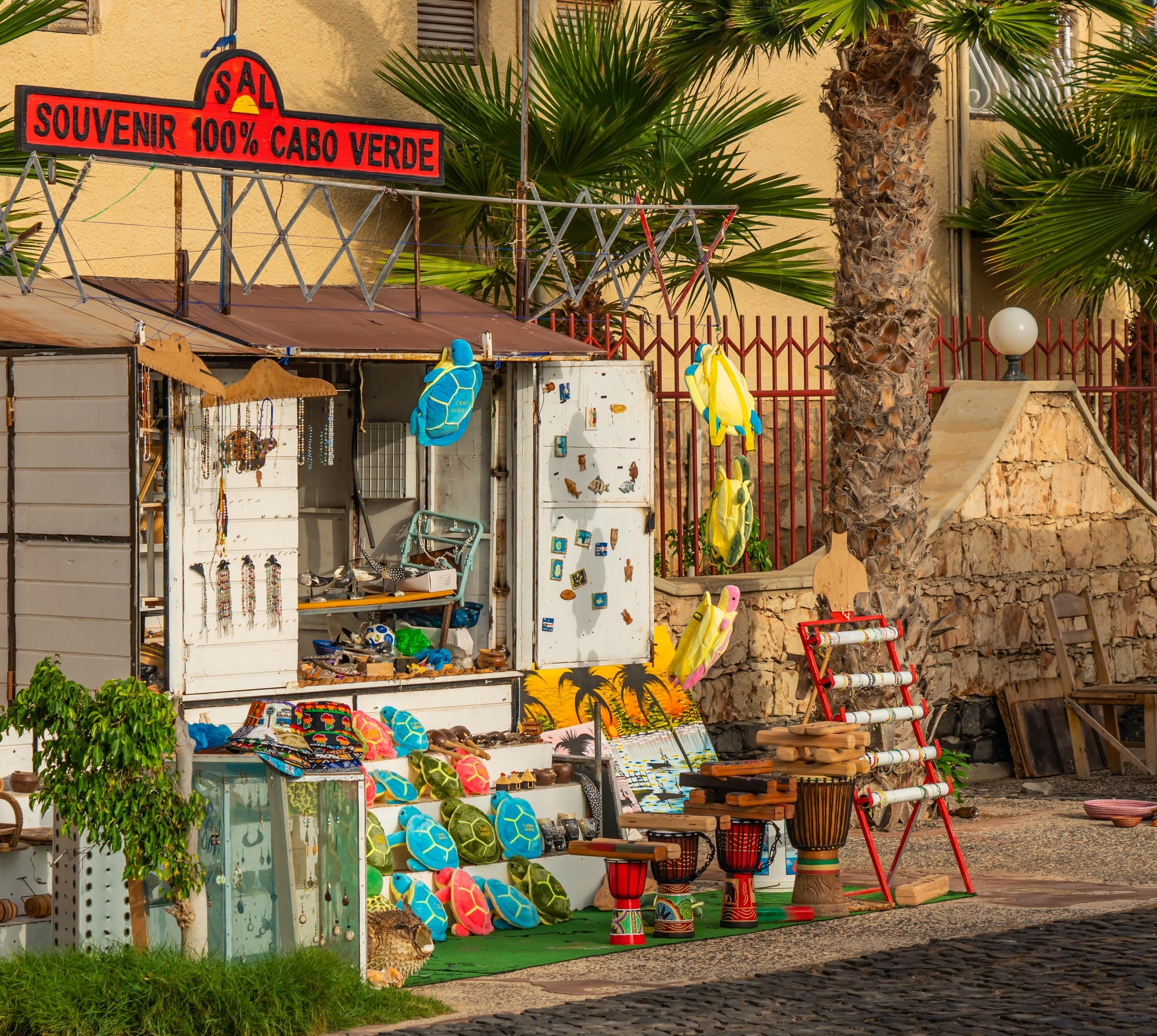 EinkaufsfilialenAuch hier gibt es nur original kapverdisches Kunsthandwerk, z. B. panos, originelle Taschen und andere Accessoires, Schmuck, lokale und regionale Spezialitäten – eben handgemachte Souvenirs statt Massenware.