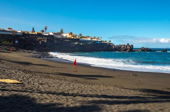 Einst als eigenständige Urlaubssiedlung konzipiert, ist Playa de la Arena längst mit Puerto de Santiago zusammengewachsen. Eine Besonderheit ist in Playa der gleichnamige, nur 300 m lange Strand aus feinstem, pechschwarzem Sand. Giftgrüne Palmen bilden dazu einen prächtigen Kontrast. Übrigens wird hier auch die stärkste Sonneneinstrahlung der Insel gemessen. Seit über zehn Jahren erhält die Playa de la Arena regelmäßig die Blaue Flagge zugesprochen, Zeichen höchster Qualität von Strand und Wasser. Auch die Infrastruktur ist ausgezeichnet: Liegen (zum Mieten), Toiletten, Rettungsschwimmer.