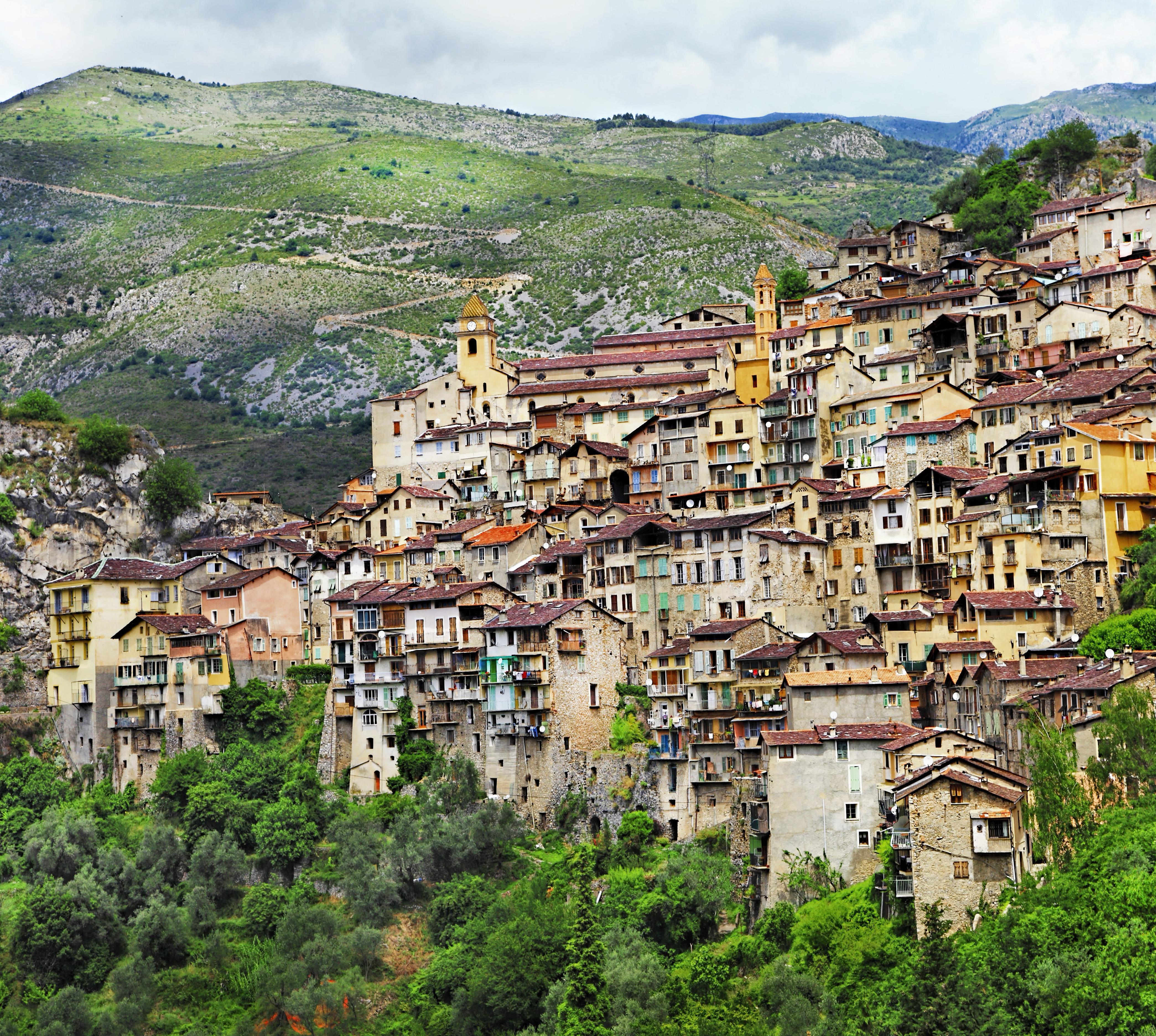 Saorge ist das Hippiedorf der Côte d’Azur: Biokekse, Bauern mit Dreadlocks und die höchsten Wahlergebnisse für linke Kandidaten. Die kleine Épicerie bietet selbst gemachten biologischen Haferkuchen an, viele Männer tragen Bärte und manchmal auch Babys im Trageschal, die Frauen haben bunte Tücher im Haar und schwielige Hände vom Gemüsebeetumgraben. Die lokalen Honigsorten lassen sich in der kommunalen Miellerie kosten und kaufen. Der Chataîgne-Honig soll jeden Schnupfen besiegen. Seit 2023 zählt das schöne Dorf mit seinen über den Hang gestapelten Häusern und dem dichten Gassengewirr zu den Plus Beaux Villages de France. Die Pfarrkirche mit ihrem barocken Innenleben erinnert an eine Säulenbasilika. Im 17.Jh. wurde das Franziskanerkloster mit seiner inzwischen renovierten Fassade gebaut. Zwischen dem Dorf und dem Kloster liegt die Osteria Lou Pountin mit vielen Bioprodukten, die im kühlen Speiseraum oder auf der sonnigen Terrasse serviert werden.