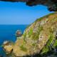 Kurz bevor die Stufen zur Bucht führen, zweigt der Pfad ab zum Window in the Rock, einem großen Felsfenster, das herrlich den Blick nach Westen rahmt. Herm und dahinter Guernsey sind gut auszumachen. Reste einer Seilwinde erinnern noch an die Zeit, als die Bauern von Sark hier den Seetang vom Meer heraufzogen, um ihn als Dünger auszubringen.