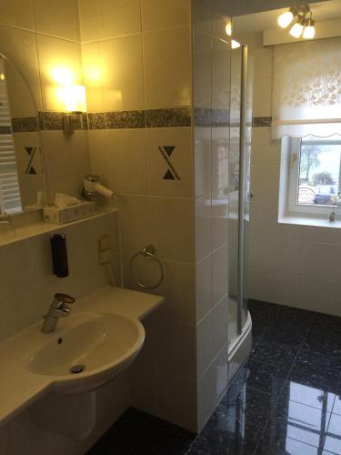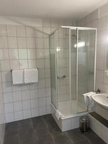Es gibt ein eigenes Badezimmer – mehrere Wohneinheiten in der Unterkunft Gasthof Spelsberg haben außerdem einen Balkon.