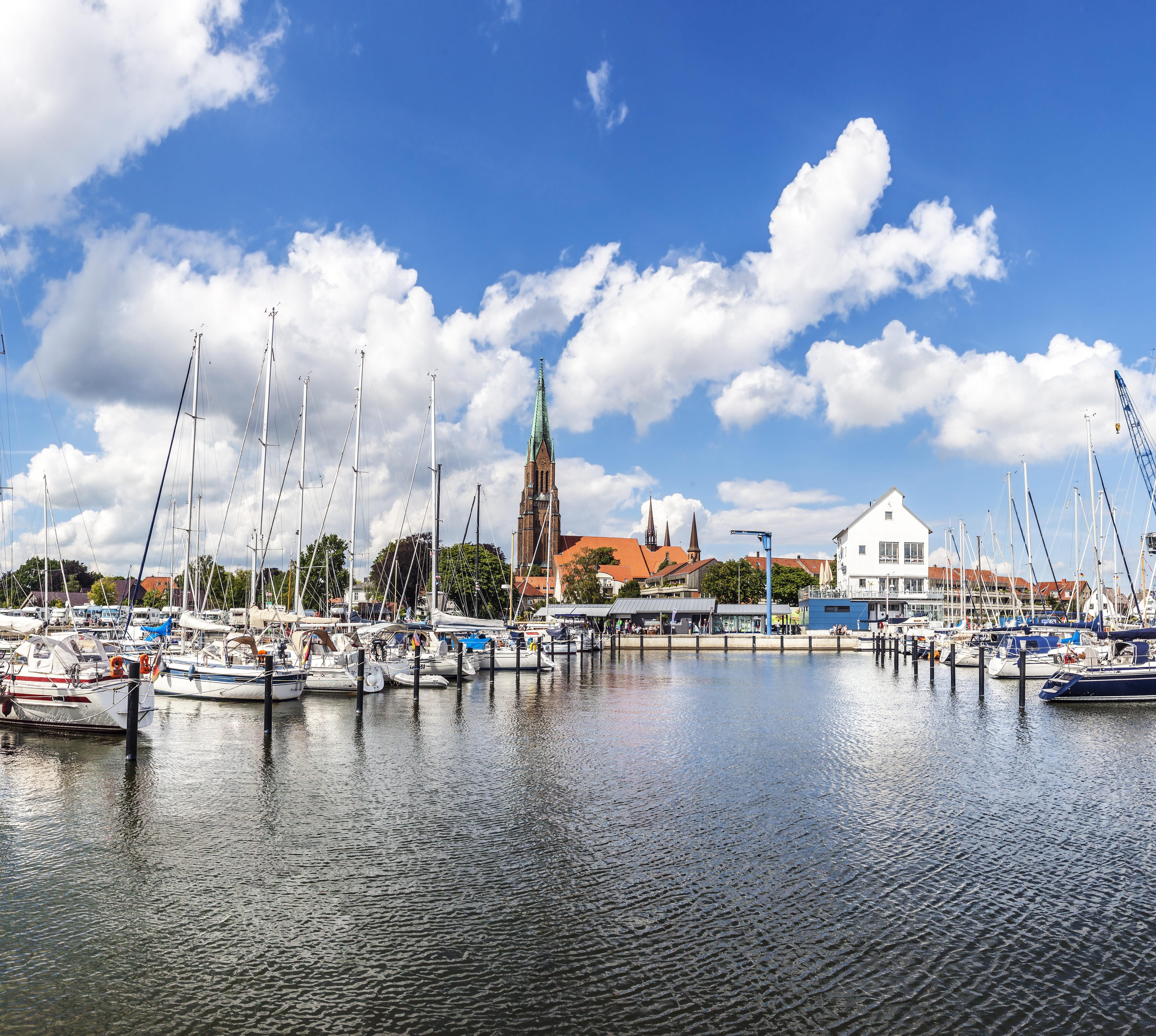 Schon von Weitem grüßt Schleswig mit dem schlanken Turm seines Doms. Als Wahrzeichen beherrscht er die Silhouette von Schleswig-Holsteins ältester Stadt, die 804 erstmals erwähnt wurde. Besonderes Ansehen erlangte Schleswig im 16.Jh., als die Gottorfer Herzöge dem Fürstensitz zu neuem Glanz verhalfen.