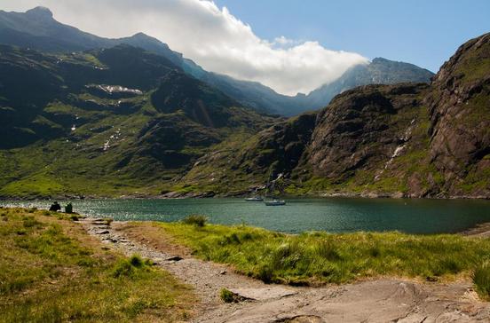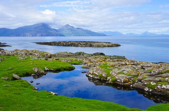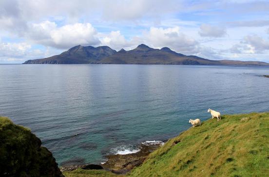 Oft in Wolken verhüllt, erhebt sich auf Skye die mächtige Felsformation der "Black Cuillins". Ihr höchster Berg ist 993 m hoch. Die großen Berge aus Basaltgestein sind schwierig zu begehen.