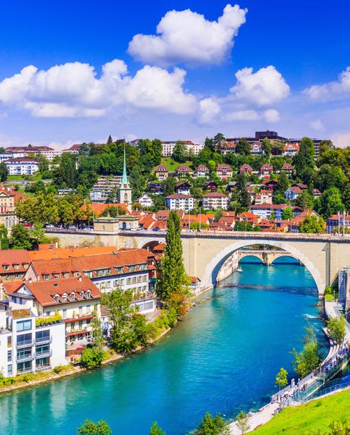 Klingende Kuhglocken, malerische Bergseen und Käse mit Löchern – so urig kennen wir die Schweiz. Aber sie kann auch modern und urban. Lass dich von ihrer Vielfalt überraschen, während du in den Laubengängen der Berner Altstadt shoppst, im Bernhardiner-Museum in Martigny süße Welpen streichelst oder dir beim Rafting durch die Rhein-Schluchten nasse Füße holst!